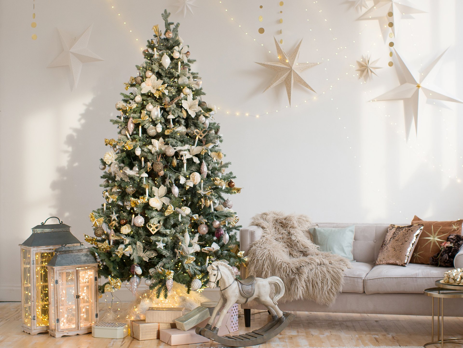 Благодаря разнообразию форм и оттенков, можно выбрать миниатюрные настольные варианты для небольших комнат или пышные, высокие ели для масштабных залов.